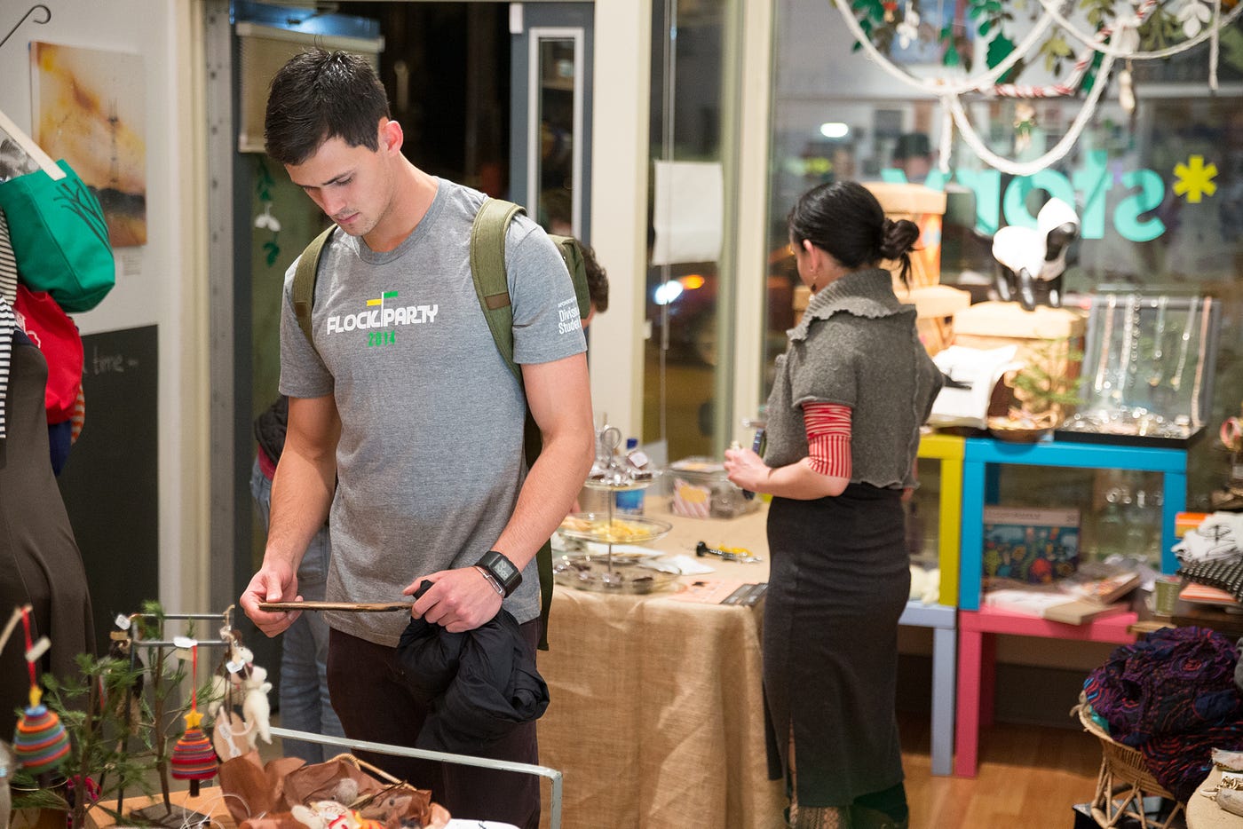 Story, one of our favorite boutiques on Clement Street, was full of visitors enjoying bubbly drinks, small bites, cool beats, and artwork by Sita Rupe, Nate1, and Coco Leo.