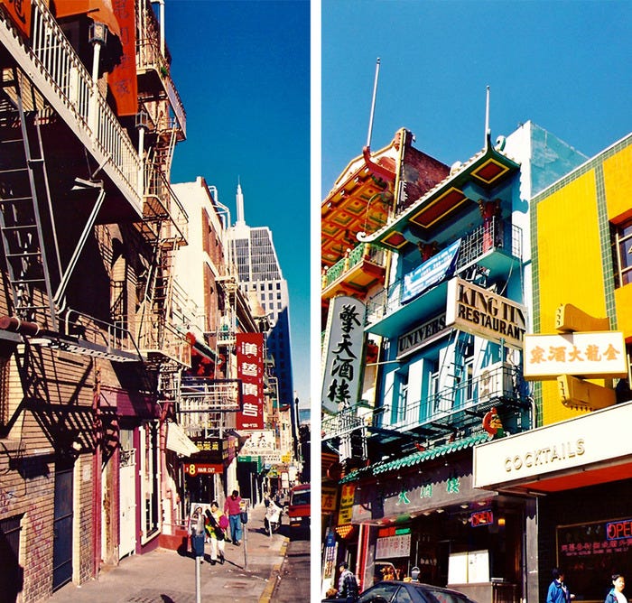 History is everywhere you look — the type of history we have vague notions of in SF but rarely see manifest in physical form. History related to the gold rush. For example, consider the Chinese Benevolent Associations, which have been extant since the first wave of Chinese immigrants came to San Francisco and are crucial cultural institutions for Chinatown. The original and best known of these were called the “Chinese Six Companies” — associations organized to help Chinese immigrants gain greater social agency while steering them away from prostitution and other vices. If you look closely along Waverly Place, you’ll notice a number of doorways that have small signs in Chinese and English declaring that they are this or that Benevolent Association. You’ll also spot signs for immigration lawyers, and while Chinatown is no longer the epicenter for Chinese immigration it once was, it still plays a role. Beyond that, it is highly symbolic of the bridge between China and the U.S. for many Chinese Americans. And despite the vast, dense cities of China teeming with people, San Francisco is still known as dia foul (大埠) in China, or “the big city,” an indication — if there ever was one — of its cultural position.
