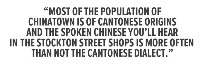 In Chinatown you can get your printing done at Culture Lite or several other quality print shops, hit a laundromat on Waverly Place, and get all manner of foodstuffs from the green grocers, fishmongers, and other shops on Stockton Street, not to mention the scores of restaurants and Hong Kong–style bakeries.