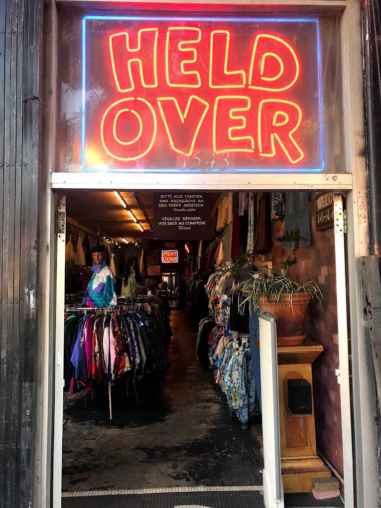 Held Over excels in reasonably priced pieces from the ’60s and ’70s, with an especially good selection of jeans, miniskirts, men’s shirts and tees, and European vintage.