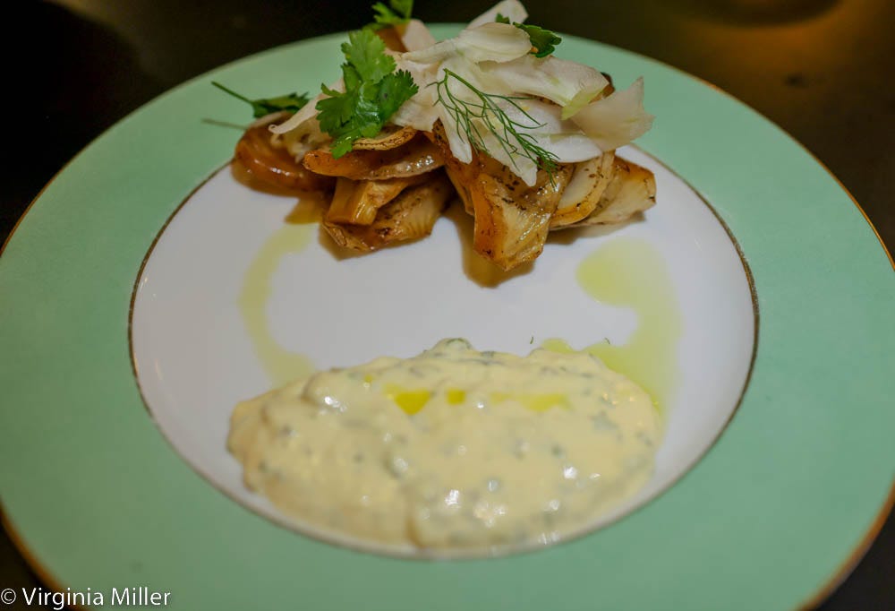 I was delighted by soy-braised fennel agrodolce on one side of a mint-green-rimmed plate, with a thick cara cara orange and white shoyu-laced egg salad on the other side. Agrodolce is a sweet and sour Italian condiment of contrasting vinegar and sweeteners. As fennel fanatics — evolving from being fennel-anise-licorice haters in our youth — me and my partner Dan (“The Renaissance Man”) loved Daytrip’s sweet-and-savory fennel. But it also pleased our friend who loathes fennel. Big win. More importantly, the odd combo with a goopy, nicely acidic egg salad didn’t sound inspired… but was.