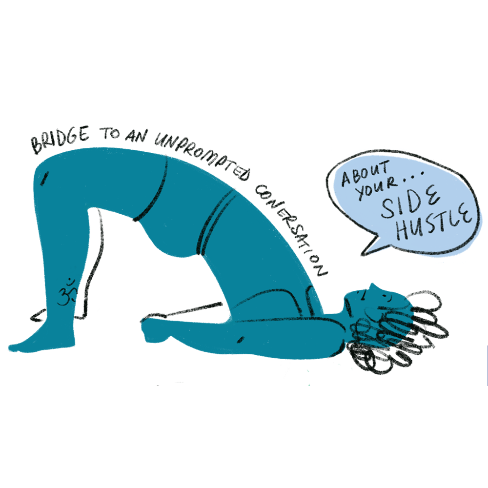Clumsily contort yourself to an unnatural bridge position. You don’t look cool, but at least you’re participating in a socionormative conversation starter for the 22-to-34 target age demographic. Exhale.
