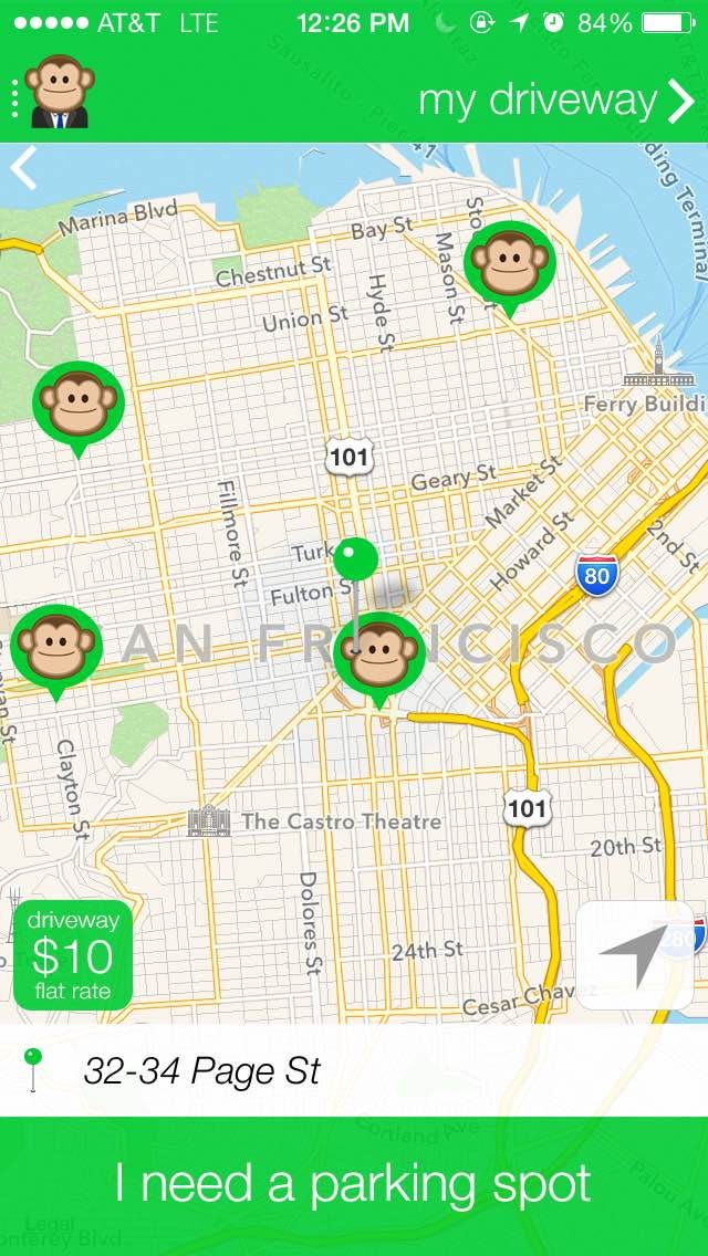 Instead of auctioning off public property this time, the company is focused on private driveways (or other private lots). Just list your space on the app and drivers will pay to park in your driveway. Currently, it costs drivers $10 to use the service, with $8 going to the driveway owner and the rest to MonkeyParking, according to San Francisco magazine. There doesn’t seem to be much of a user base so far. When I looked for a space around Hayes Valley, the app showed only four spaces available, just one of which was relatively close to my office on Page Street.
